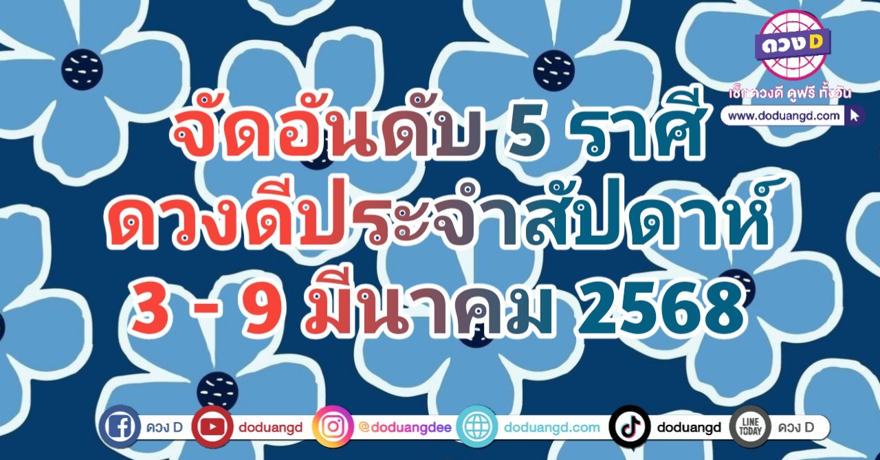จัดอันดับ 5 ราศี ดวงดีที่สุด ในสัปดาห์นี้ ตั้งแต่วันที่ 3 – 9 มีนาคม 2568 ดวงมีโชคลาภ การเงินร่ำรวยดี