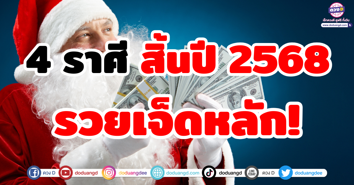 4 ราศี ดวงสิ้นปี 2568 มีสิทธิ์รวยเจ็ดหลัก! เงินไหลไม่หยุด ดวงดีเกินต้าน!